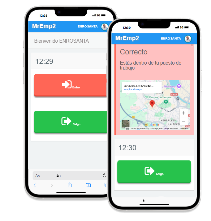 En caso de ser necesario, a partir de la vrsión para más de 5 usuarios, el programa MrEmplea2 funciona con la opción de Geolicalización, con lo cual un usuario debe autorizar a la aplicación para ser geolocalizado cuando ficha al entrar y cuadno ficha al salir.