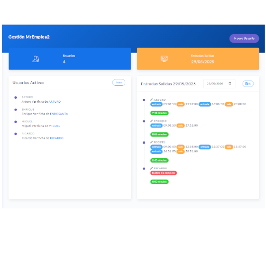 Cumple con la ley de registro horario de 2025. App para fichar fácil y desde cualquier lugar. Registra entradas y salidas, gestiona horas de trabajo por empleado y cumple con el Real Decreto-ley 8/2019. Todo desde el móvil, web o tablet.